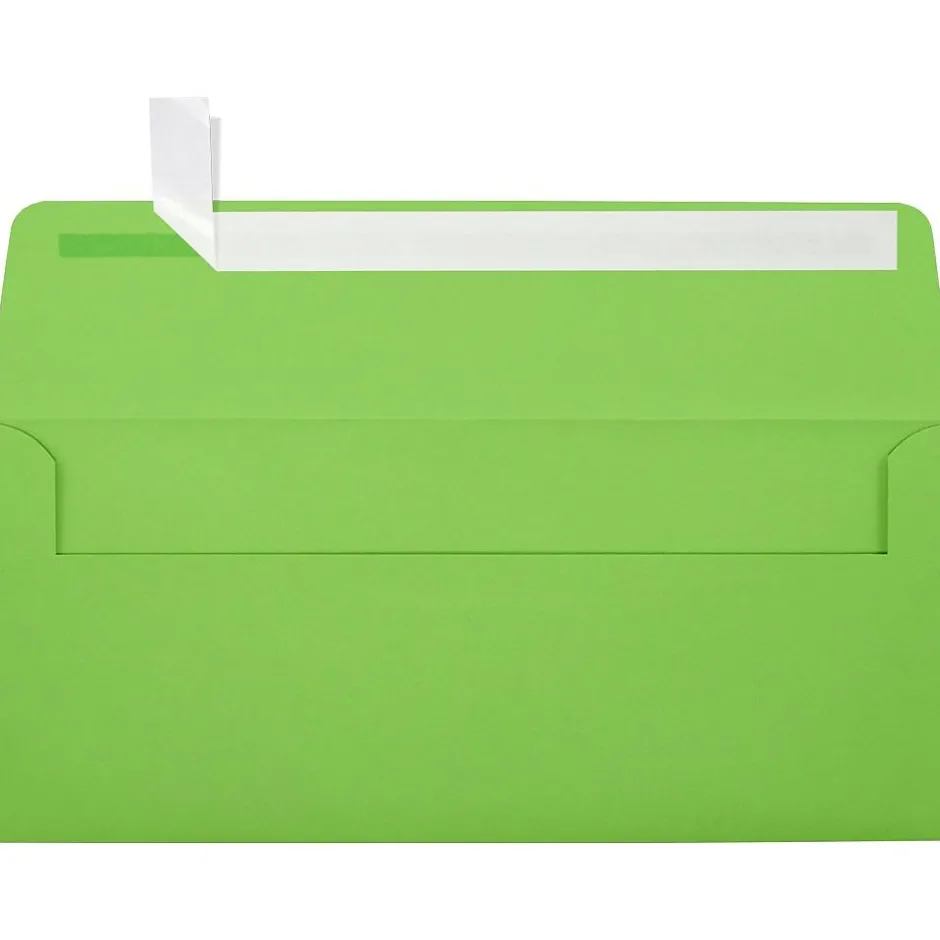 LUX® Size 10 square flap envelope in limelight color of 80 lbs paper weight is sold as 250 per box. 4 1/8″ x 9 1/2″ Envelope is ideal for long, narrow invitations or announcements while being compatible with laser and inkjet printers.