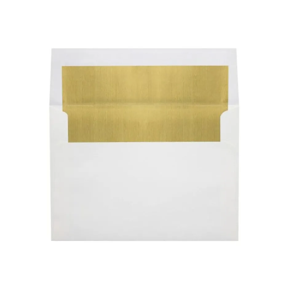 LUX® Envelope in white with gold LUX lining features a peel and a press square flap for secured sealing. Envelope measuring A8 (5 1/2″ x 8 1/8″) is laser/inkjet compatible, with weight of 60 lbs, sold as 250 per box.
