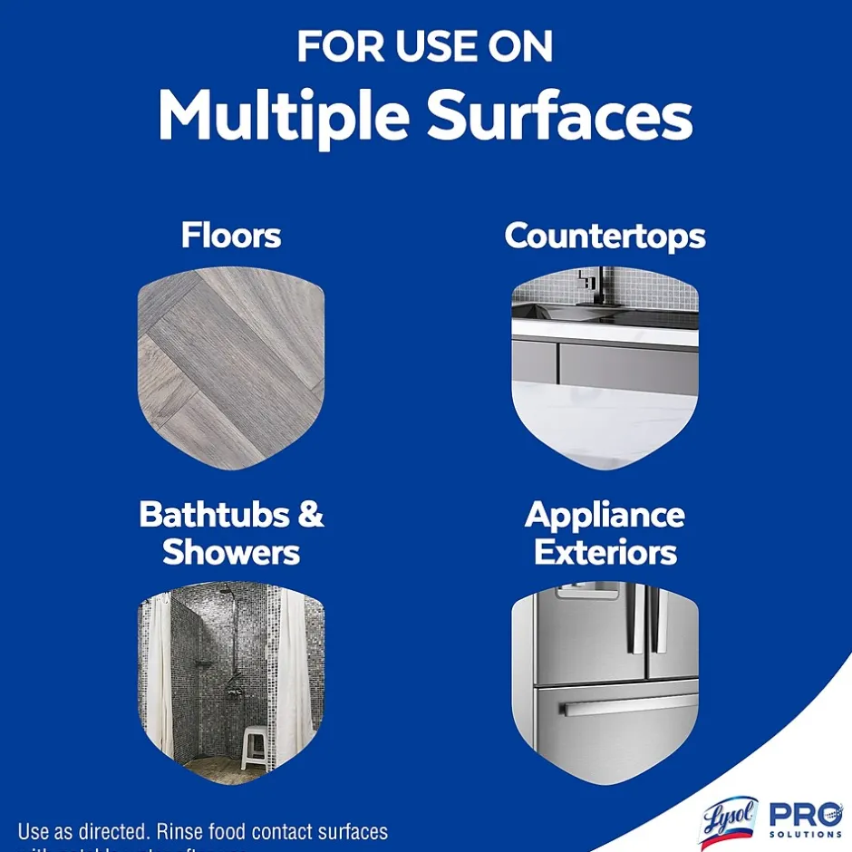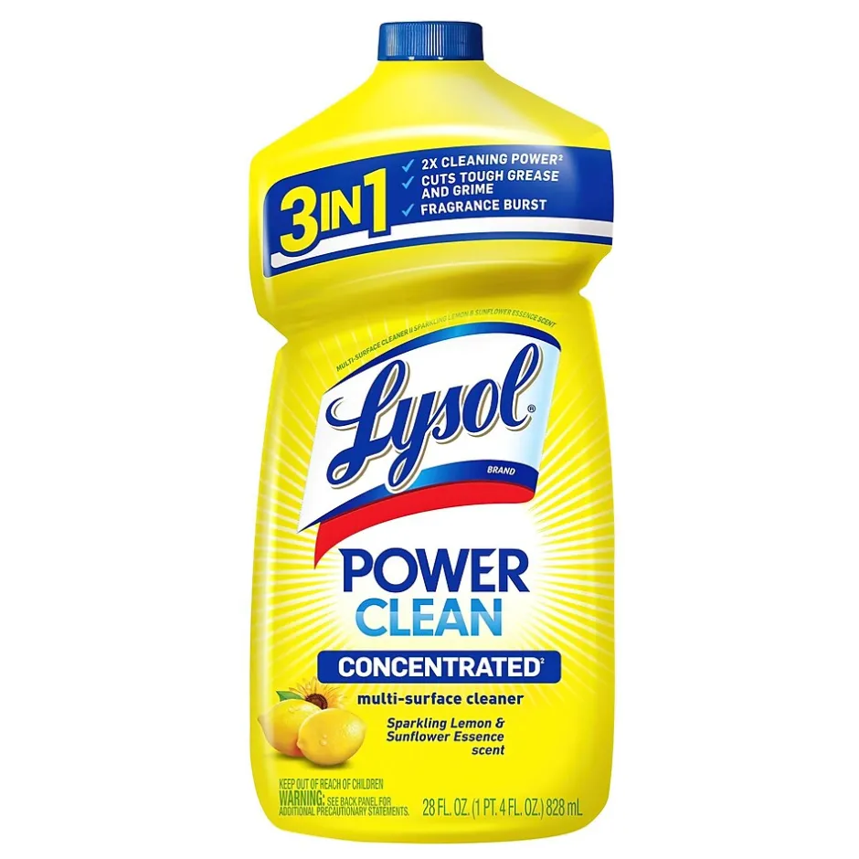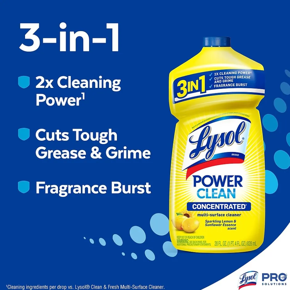 With Lysol® Power Clean Concentrated Multi-Surface Cleaner, you can cut through tough grease and grime and get twice the concentration per drop when compared to Lysol® Clean & Fresh Multi-Surface Cleaner. Delivers a fresh, clean scent with a fragrance burst, helping enhance the experience. The concentrated formula that yields 28 gallons, when diluted, of cleaning power is economical and can be used on a variety of hard, non-porous surfaces in kitchens and restrooms.