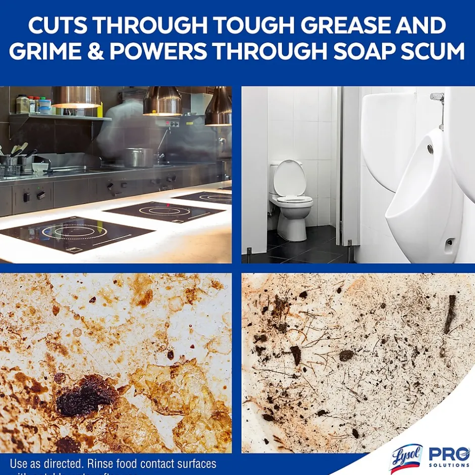 - Power through tough grease, grime, and soap scum on floors, appliance exteriors, washable walls, countertops, toilet bowl exteriors, bathtubs, showers, and doorknobs.