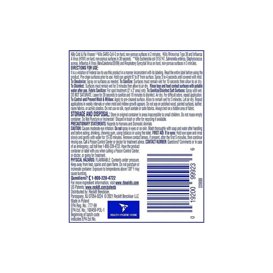 Kills 99.9% of viruses and bacteria, including cold and flu viruses, Salmonella, E. Coli, MRSA, RSV, Staph, and Strep when used as directed. Proven to kill the virus that causes COVID-19 in 15 seconds when used as directed.