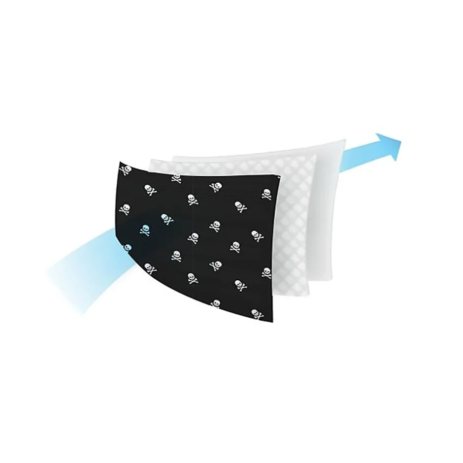 - Comes in black with a skull pattern and features an adjustable wire that runs along the top to serve as an adjustable nose clip