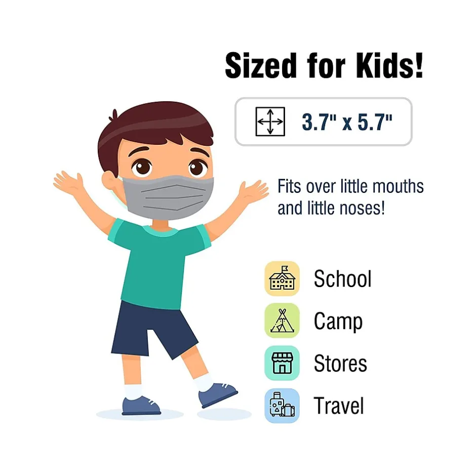 - 3-ply face mask fits comfortably on boys and girls, even toddlers; now you can take your children with you to the store, go on trips, and send them to school or camp safely