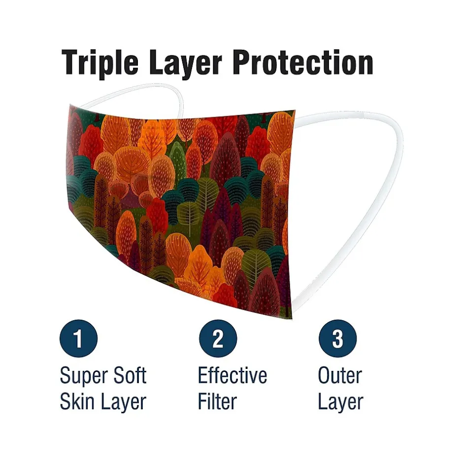 - Adjustable metal wire runs along the top as a nose clip; the masks come in assorted fall designs