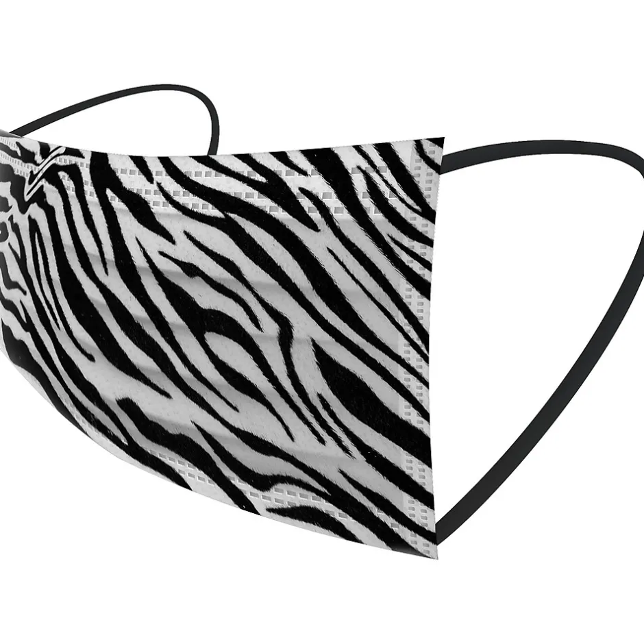 - Flat-fold shape with elastic ear loops for secure hold; the masks come in assorted animal prints (10 of each)