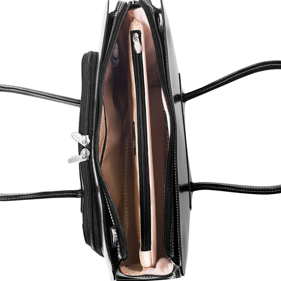 Multi-use briefcase offers a sleek contoured design. Front organizer zipper section with storage space for media devices, business cards, key holder and pens. Top zipper allows easy access to the main compartment.Interior zipper pocket helps organize. Double compartment divided by secured zipper pocket. Laptop compartment protects laptops up to 15″ in screen size. Tablet pocket. Practical and stylish tubular leather arm straps. Removable shoulder strap included. Smart strap allows easy attachment on extended handles of other rolling cases.