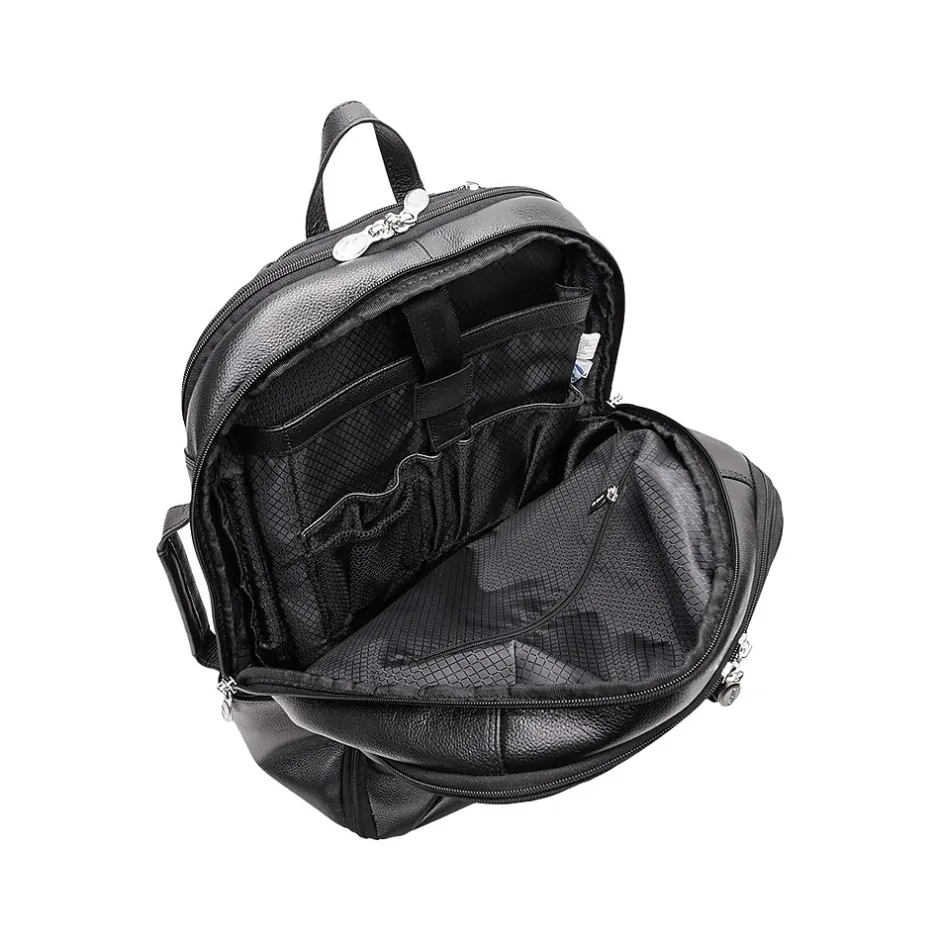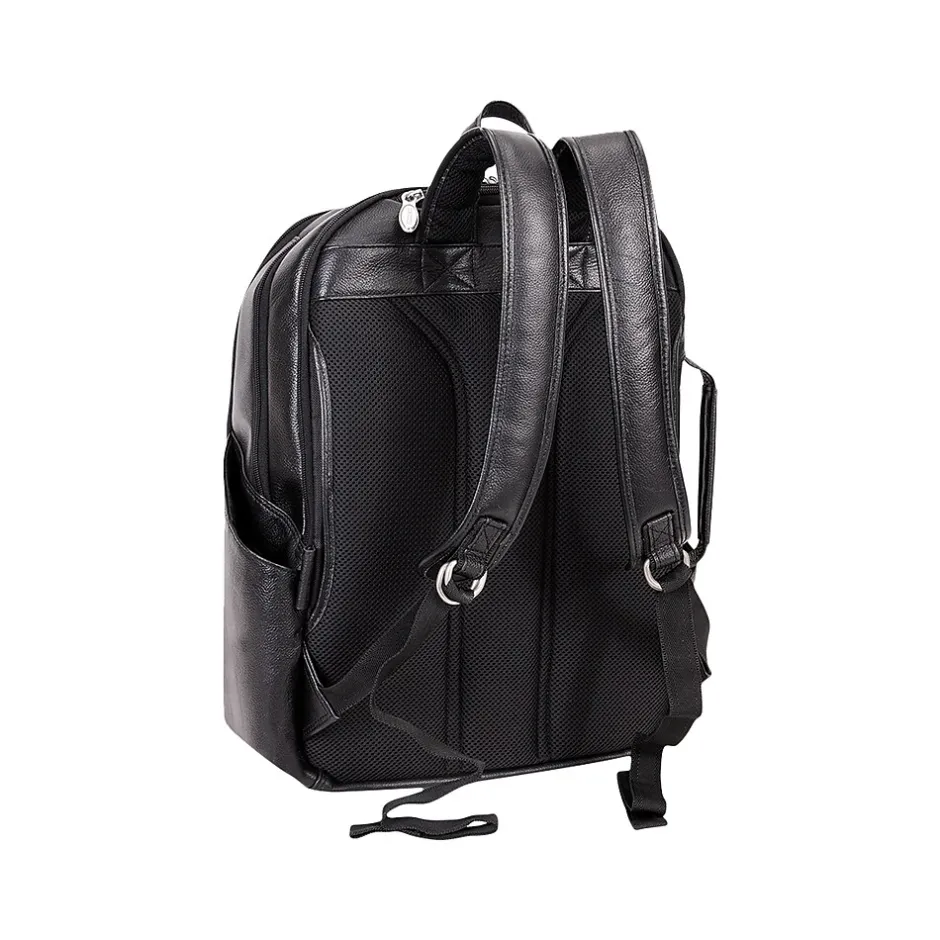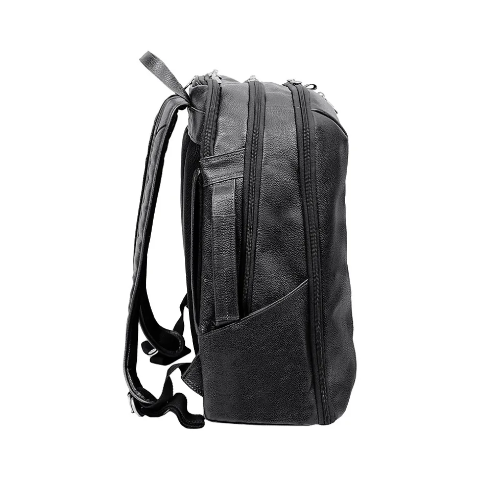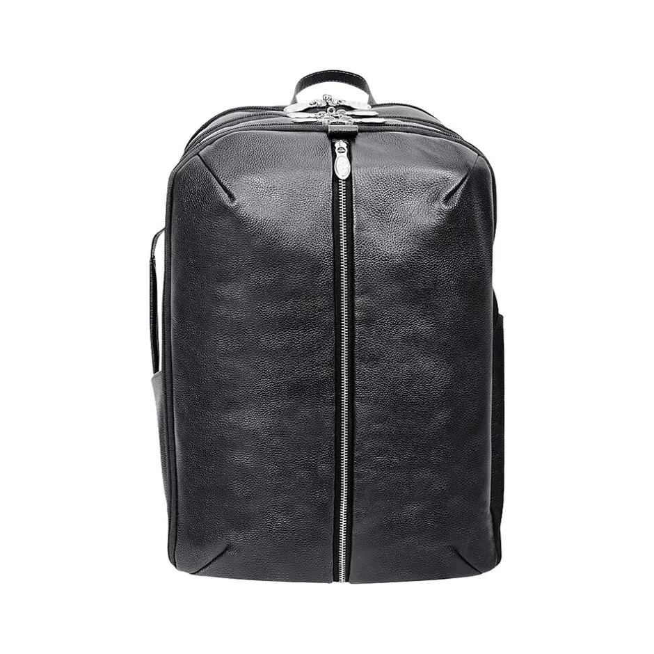 If you’re planning a business day trip, this McKlein U Series Englewood 18″H leather carry all backpack is the perfect travel companion to carry clothes and important devices you need for success. The top carry handle and pull-tab help open access to your stored items with ease. The front main vertical zipper compartment is perfect for storing clothing and travel essentials with tie-down straps. The two side pockets are perfect for keeping water bottles and umbrellas easily accessible. The small top zipper pocket keeps your phone and keys secure and easy to access. The middle compartment features a 17″ built-in laptop sleeve, a business accessory organizer, and an interior full-length zipper pocket. The back compartment comes complete with a secure tablet pocket and storage for files and documents. Keep your backpack comfortable with padded air mesh adjustable backpack straps with a piggyback side attachment or carry it like a briefcase with the side handle.