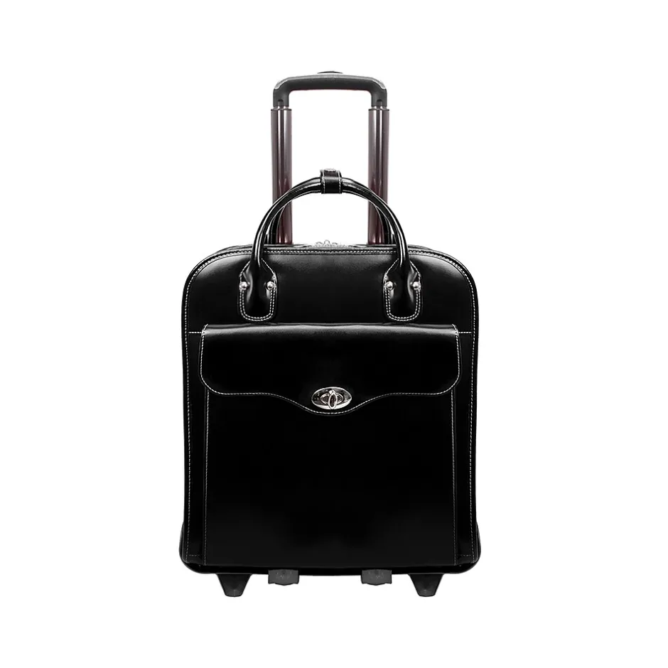 You will go, you will see, you will conquer with this McKleinUSA Melrose W Series briefcase by your side, of course. Its patented two-in-one detachable wheel and handle system with vertical, Euro-influenced design allows for easier maneuvering in tight, crowded areas. The narrow design also benefits users who travel on planes with the ability to maneuver down aisles without having to lift the bag. Features a stylish, flap-over front pocket for files and accessories with a secure clasp and twist lock. Comes with a secure, centered zipper pocket within the main compartment. The main compartment features a padded laptop section, interior organizer, interior padded zipper pocket for tablet cases, and space for files. Its versatility allows you to adapt so you can continue on your journey apace.