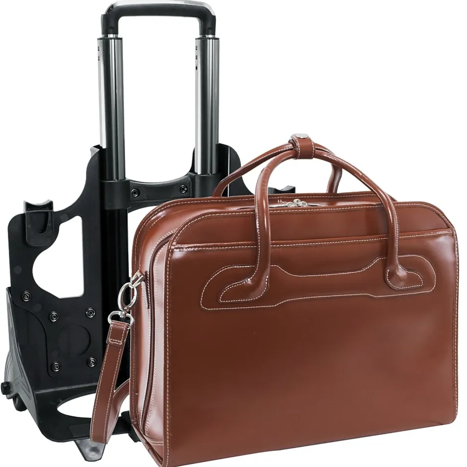 Patented 2-in-1 Detachable Wheel and Handle System briefcase. Interior organizer with storage space for media devices, business cards, key holder and pens. Double compartment divided by secured zipper pocket for important documents. Built-in padded laptop compartment that protects most laptops up to 17″ in size. Dual Laptop Protection System uses a high-tech ABS frame to protect laptop from exterior impact and a sleeve with high-density foam to help absorb shock and prevent moisture intake. Smart Strap Attachment System allows easy attachment on extended handles of other rolling cases. Weather proof cover included.