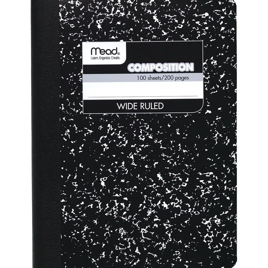 Keep notes handy with this one-subject composition notebook. Featuring a wide-ruled format, this notebook offers ample room for creative writing, sketches and other notes, while the included class schedule on the inside front cover provides convenient scheduling. This Mead Five Star marble composition notebook has multiplication tables, grammar rules and a conversion table on the interior back cover, so you can reference them easily.