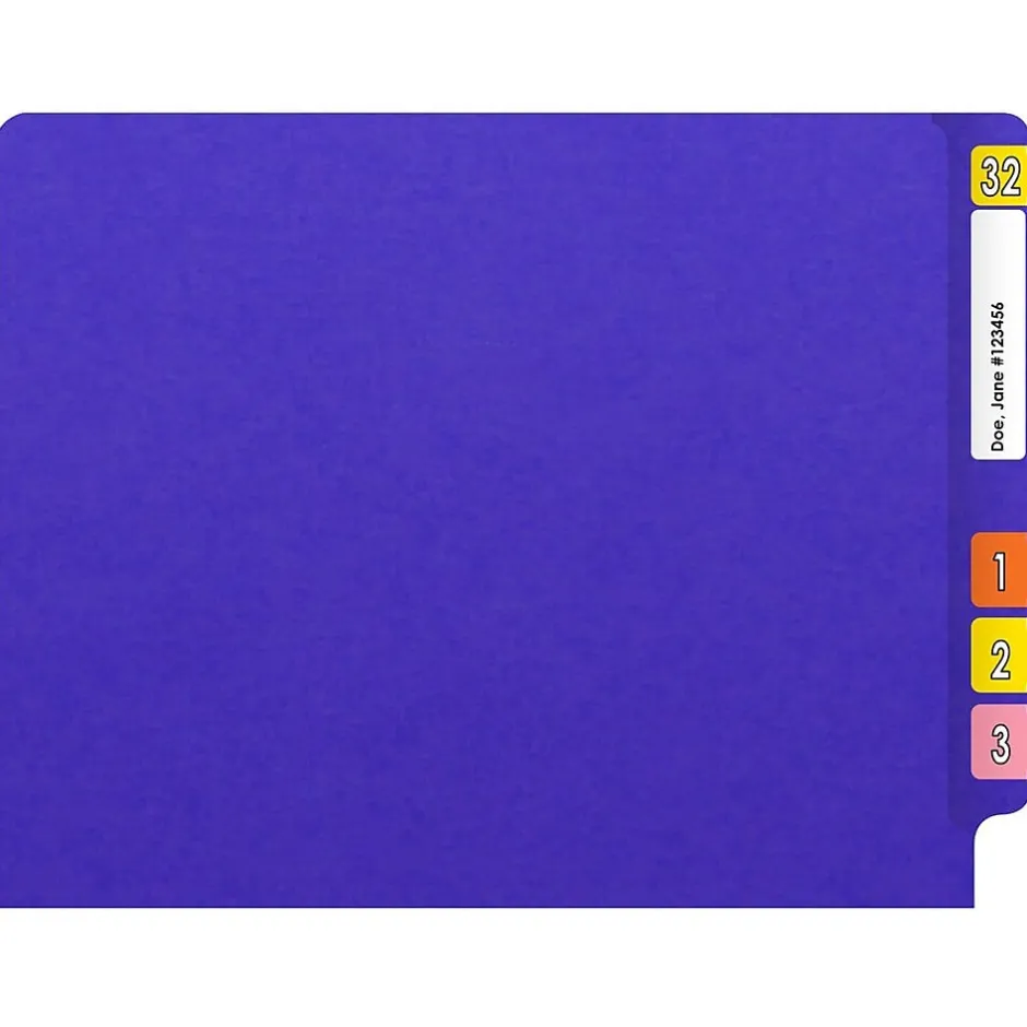 - Heavy-duty file folder made of 20 pt. paper stock in purple