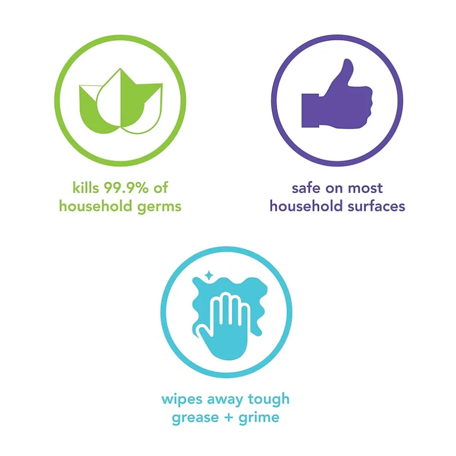 - Kills 99.9% of household bacteria on hard, non-porous surfaces.