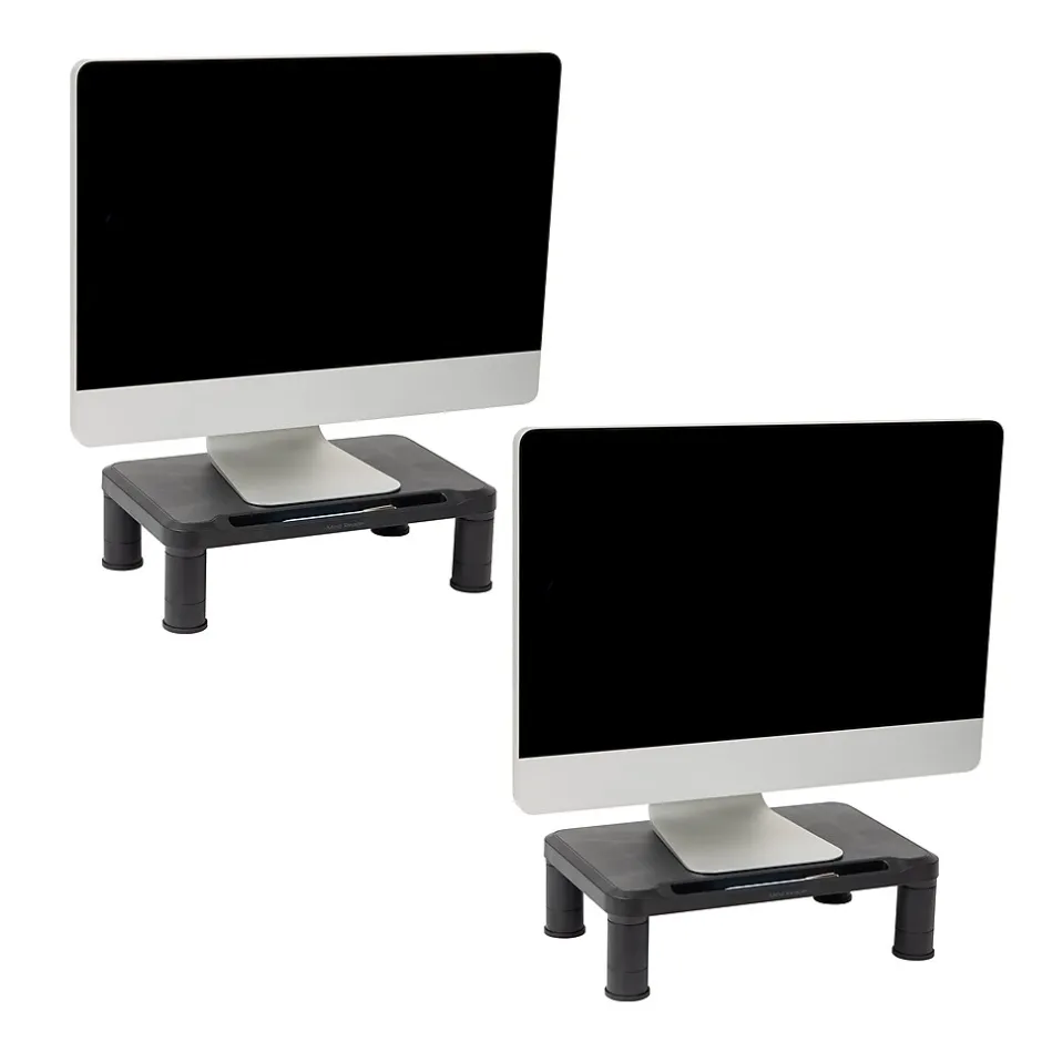 Discover the convenience and improved posture offered by this set of two adjustable monitor stands, perfect for organizing your workspace and supporting your body while you view or work. Use one for your computer monitor and the other for your laptop, TV, or printer, or keep one at home and bring the other to the office.These versatile monitor risers can also elevate your television, phone, or gaming console, adjusting in height from 2 to 5.25 inches to provide optimal support and alleviate eye, neck, and back strain. When not in use, the slim stands are easy to store in small spaces or cabinets, and can be cleaned with a cloth and mild soap/water.Featuring non-slip rubber feet for stability, these sturdy stands keep your devices safe and secure. Consider gifting one of the monitor stands to a friend experiencing eye, neck, or back strain due to poor posture while working. Ideal for dorm rooms and work-from-home setups, these slim stands not only increase available surface space but also promote better posture and overall well-being.