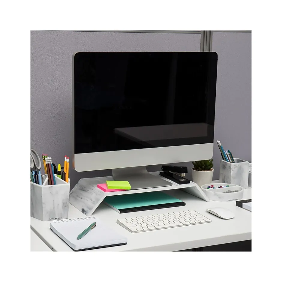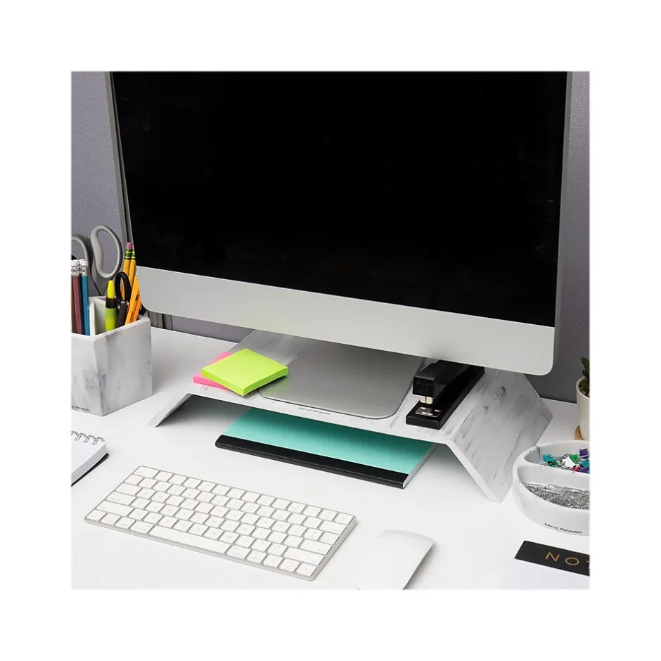 This versatile monitor stand caters to most flat-screen monitors, laptops, printers, and televisions, offering an effective solution to elevate your electronic devices for comfortable viewing. Incorporating a monitor stand into your daily work routine can significantly reduce eye strain, neck pain, and backaches, making it a crucial asset for long workdays spent on the computer.An excellent addition to any desk, this stand lifts your monitor off the desk surface, freeing up space for your other workspace essentials. The space beneath the monitor stand is perfect for storing sticky notes, writing utensils, and other office supplies, helping you stay organized and keep everything within arm’s reach.Capable of supporting up to 22lb (10kg), it’s safe for everyday use, whether at home or in the office. Additionally, its lightweight construction makes it easy to transport, offering you the flexibility to change your work location during the day.Ideal for home offices and college dorms, this monitor stand makes a perfect gift for various occasions, be it birthdays, graduations, or any time of the year. Pair it with other Marbella Collection office items for a comprehensive and thoughtful gift basket.