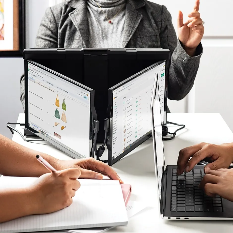 The Mobile Pixels Inc. Trio Max 2.0 Portable Laptop Monitors are upgraded, plug and play monitors where you can go from 1 screen to 3. It’s easy to use as an ultimate solution for the working professionals, gamers, stock traders, entrepreneurs, coders, and more. And as always, you can take it on the go.