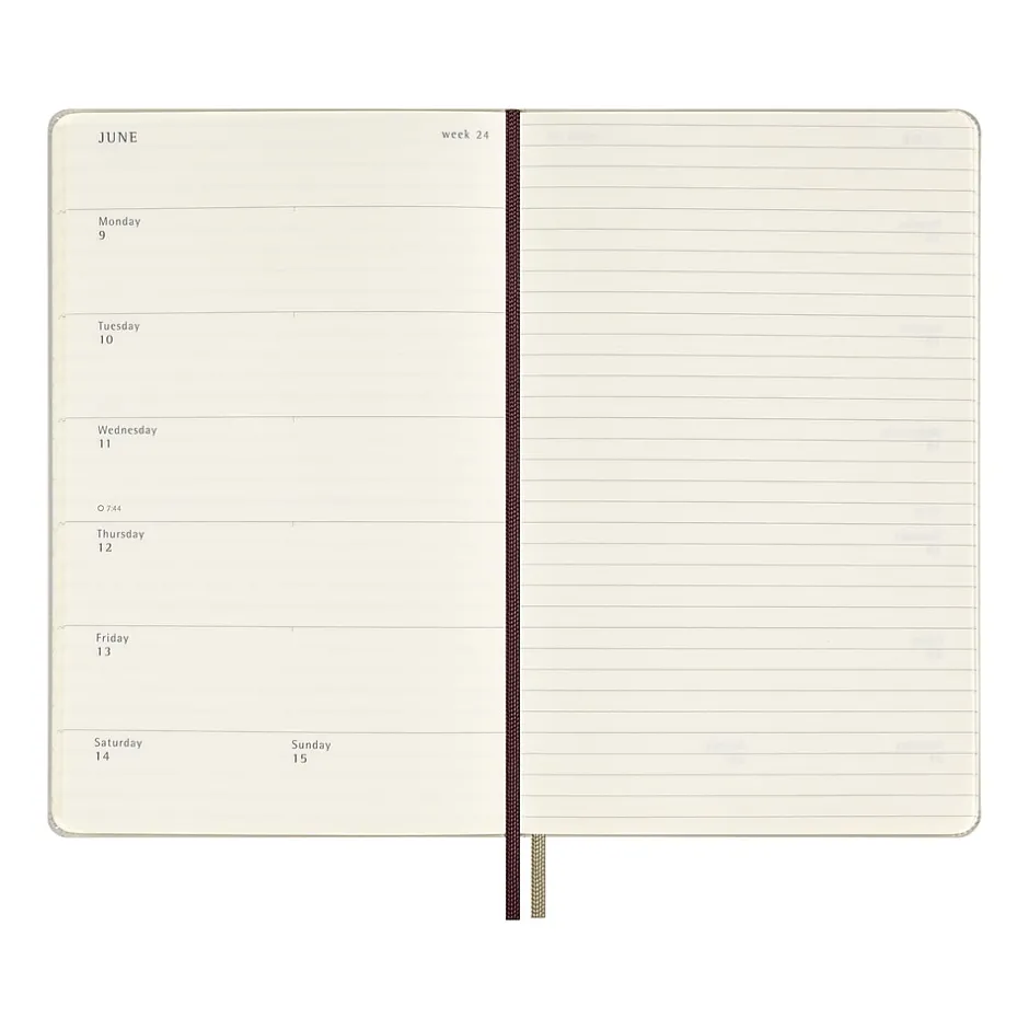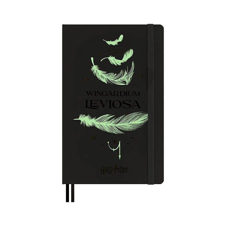 Unlock magic every day over the next year with this 12-month diary. This Moleskine Limited Edition Harry Potter Wingardium Leviosa weekly planner has a glow-in-the-dark cover and a memorable quote from the story inside. Flick through the pages to spot some important dates from the wizarding world, and grab your favorite pen to practice wand movements with the themed endpapers. Dated from January 2025 to December 2025, this Harry Potter diary has a weekly notebook layout to combine both planning and note-taking: each two-page spread shows the days of the week horizontally on the left, with a ruled page for notes, tasks, and thoughts on the right. The opening section includes a calendar and pages structured for travel planning and organization. Each diary and notebook in this collection features a spell that conjures up an iconic moment from the story. From tentative beginnings with Wingardium Leviosa to Protego Maxima and the epic final chapter. In the wizarding world, a spell is a form of expression that unlocks powerful magic, but for Harry Potter fans each familiar spell unlocks memories, evokes emotions, and provides inspiration. The real magic, of course, happens each time you express yourself with pen and paper. This diary is your everyday reminder that noting down plans by hand is the first step in making them come to life.
