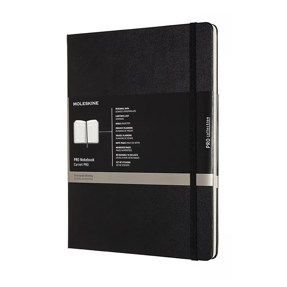 Improve productivity and track progress with this extra-large professional notebook. Numbered pages and dedicated space for project or travel planning enhance organization to meet deadlines, and an inner pocket of cardboard and fabric provides space to store loose pages. The notes pages and detachable to-do lists of this Moleskine professional notebook let you manage priorities or share ideas with colleagues.