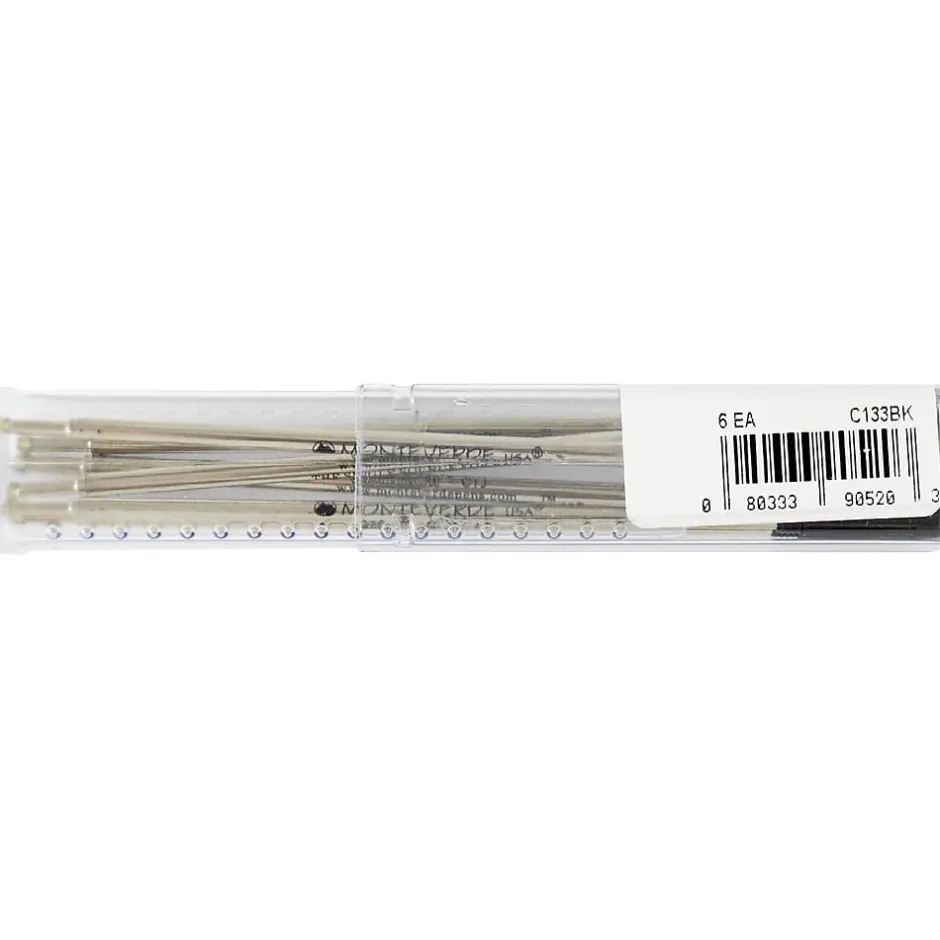 Monteverde® Black ballpoint refill to fit cross ballpoint pens is fabricated using nickel brass body and a swiss tip gives a better grip. Specially designed low viscosity ink supports uninterrupted writing, sold as 6 per pack.
