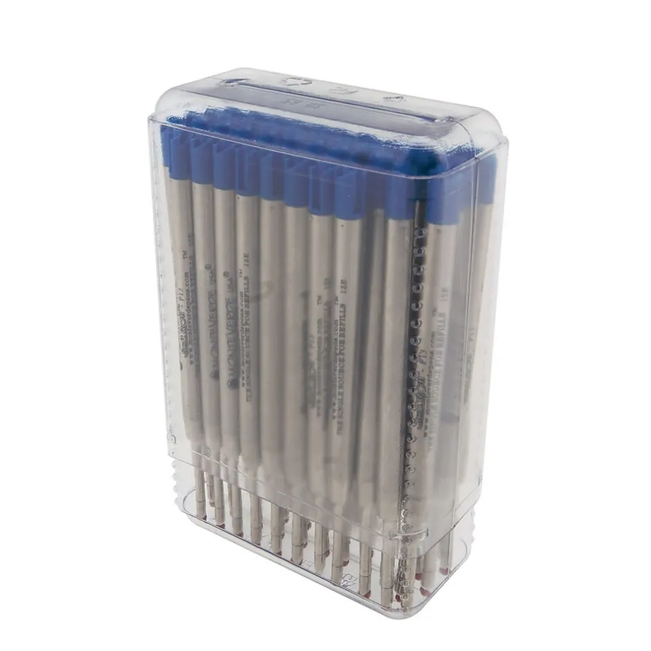 Monteverde® Soft roll ballpoint refill for parker pen has low viscosity blue ink that readily flows for providing easy flow writing. Refill having nickel silver tube and tip is sold as 50 per pack.