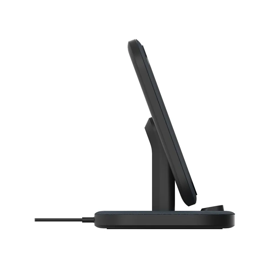 Engineered to safely deliver up to 15W of power. Your smartphone is at a convenient viewing angle while it charges. Charge your phone in landscape or portrait mode. The wireless stand can charge through cases up to 5mm thick. The compact wireless charging stand fits on any tabletop or desk.