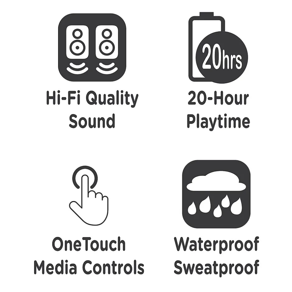 - Waterproof and Sweatproof – we designed our earbuds to be impervious to Rain and Sweat, so you can focus on your workout, regardless of the forecast.