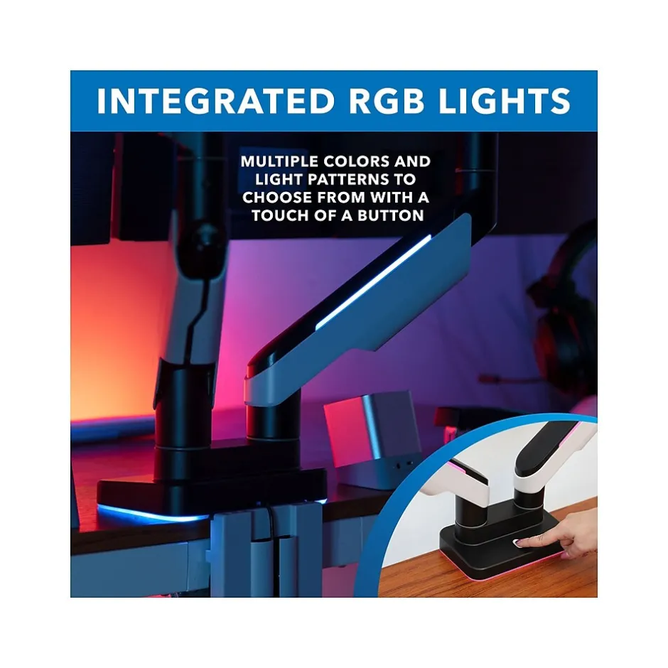 - Create your perfect immersive gaming station with this heavy-duty dual monitor arm