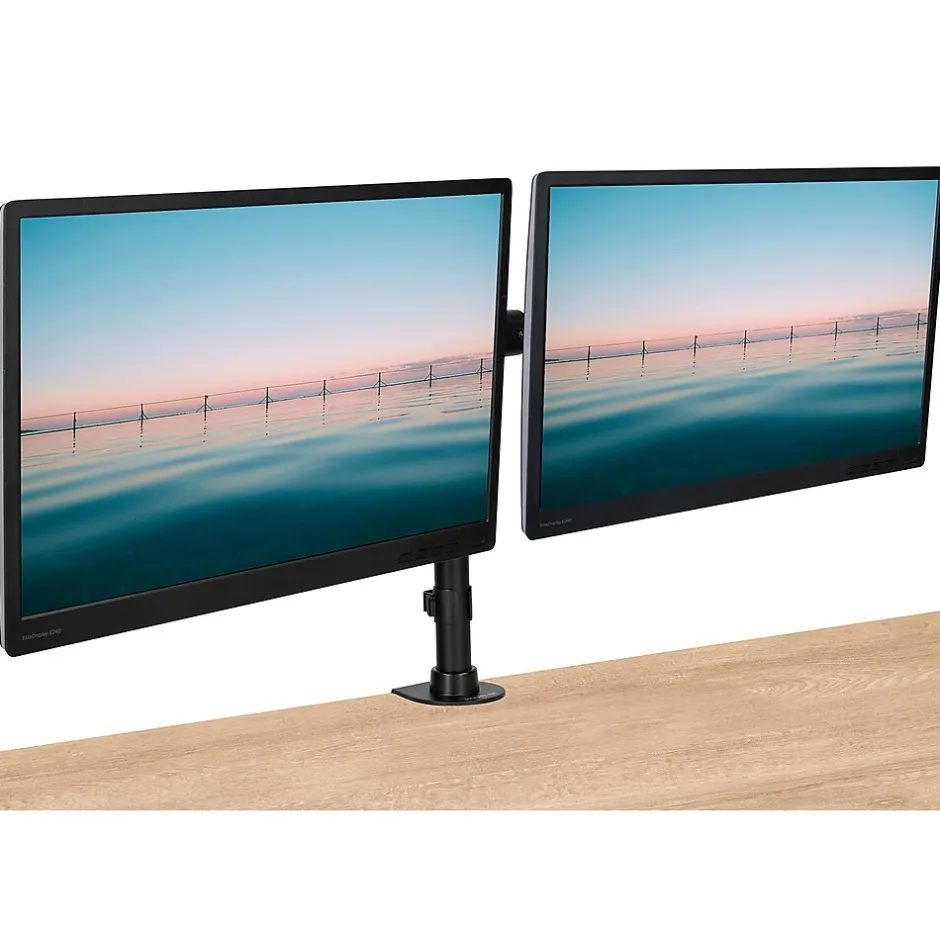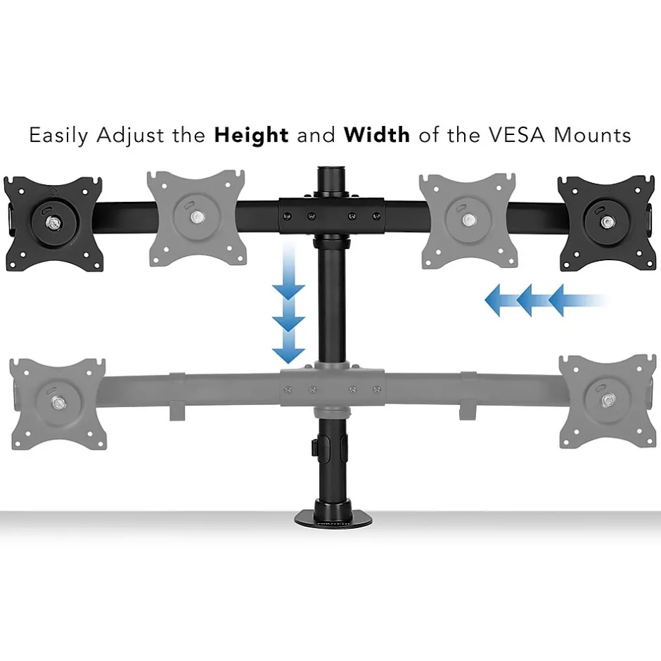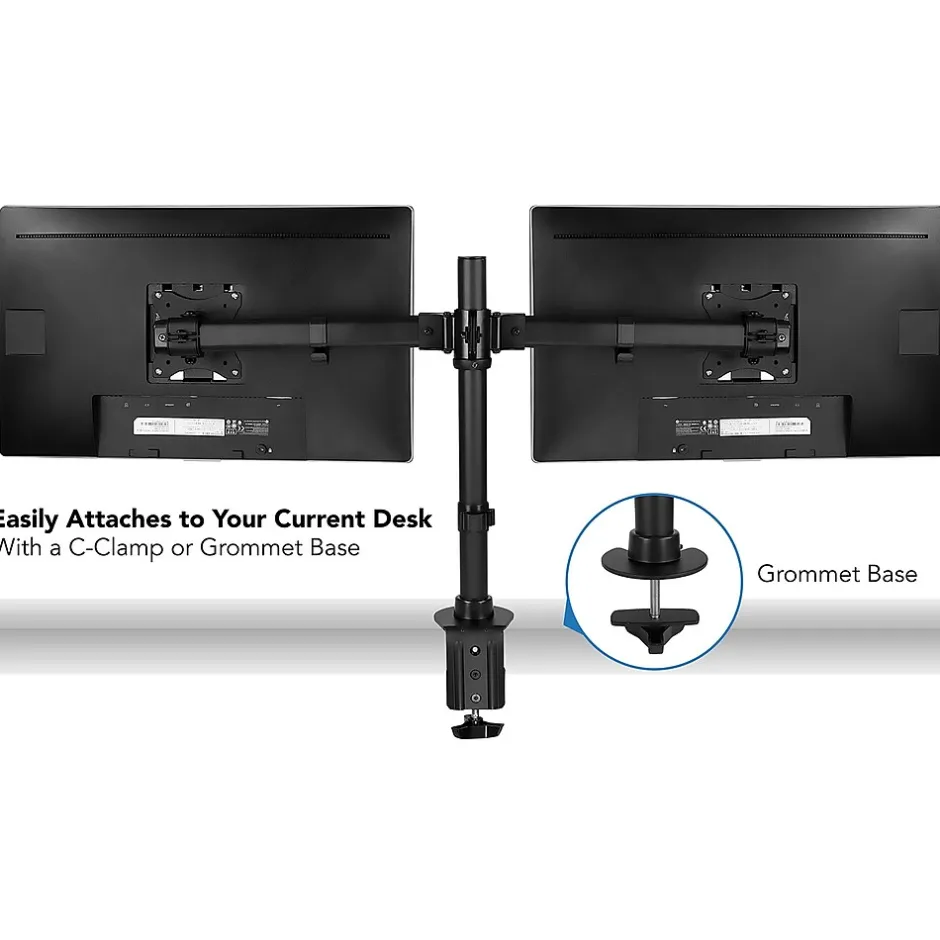 Mount-It! Dual monitor desk mount raises two displays off the desk surface, thus saving workspace and creating a productive display configuration to increase productivity. Allows you to use two monitors side by side to increase your productivity. Raising the monitors to an ergonomic height improves posture to help prevent eye, back and next strain caused by incorrect postures. Several height levels of this monitor mount will allow you to choose the right height for the optimal posture. The curved bar allows the monitors to slightly face each other to create a more immersive viewing experience – ideal for work or gaming. The horizontal bar is 31″ inches wide and allows you to easily connect two 27″ monitors side by side. The monitor mount is compatible with all monitor brands with standard bolt holes in the back. It can support VESA 75×75 (3″x3″ square hole pattern) and 100×100 (4″x4″ square hole pattern) configurations.