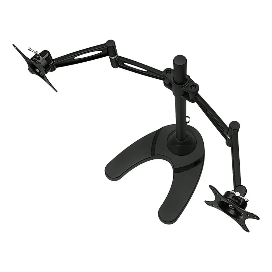 - WELL-DESIGNED: Double monitor mount has full motion, height adjustable articulating arms and are made of heavy duty steel, and have integrated cable management clips on each to keep your cables organized. Comes with both interchangeable free standing and grommet bases.
