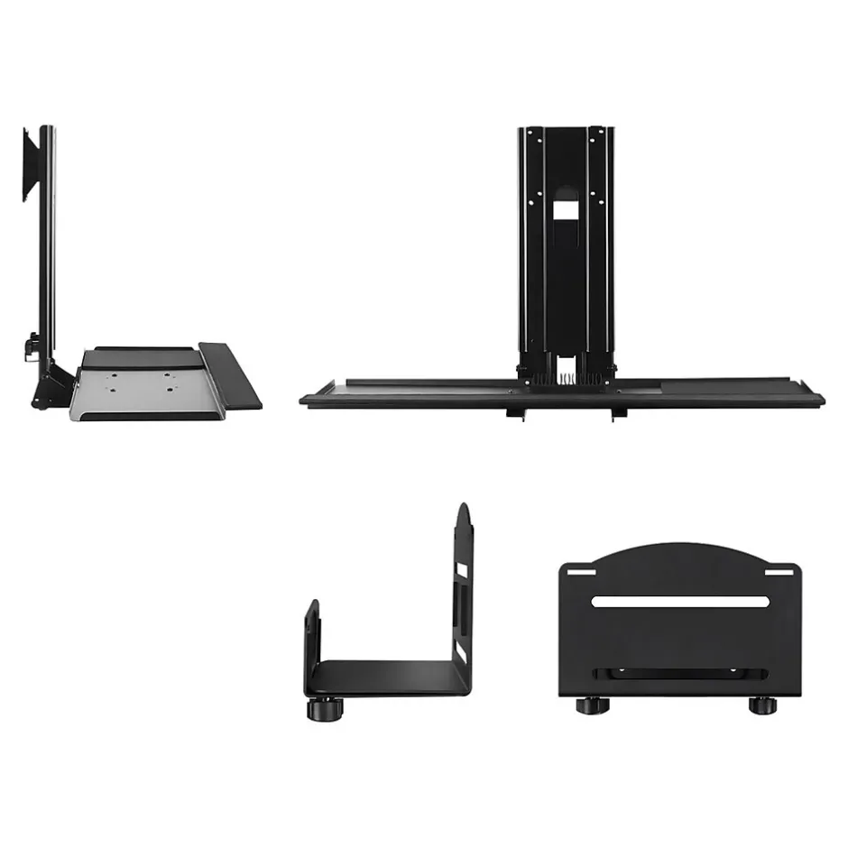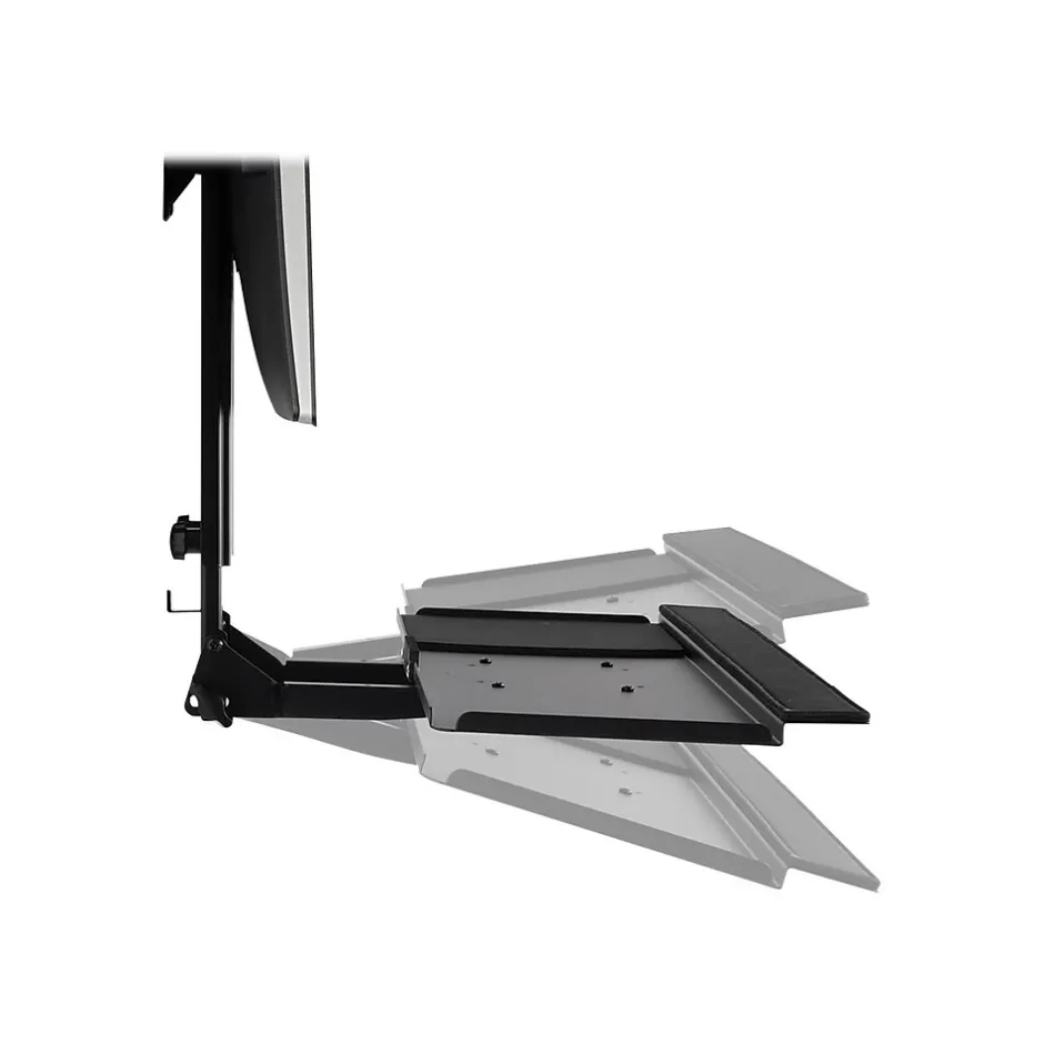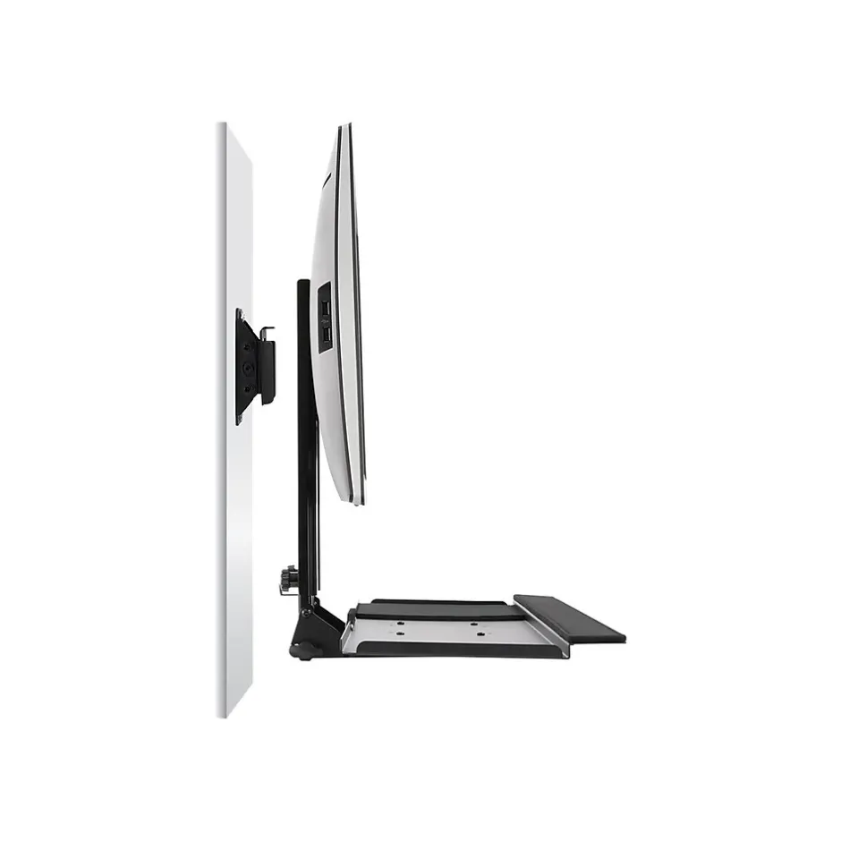 Mount-It! MI-7919 monitor and keyboard tray is designed to create a wall-mounted workstation. It is a space saving and economical solution for small spaces. Most wall mounted workstations or rolling standing desks cost 5 to 10 times the price of this wall mount platform.It is very easy to install and use. The vertical tray connects to the wall mount on the back side and to a monitor on the front side. The large keyboard platform sits directly beneath the monitor. All necessary instructions and hardware included.
