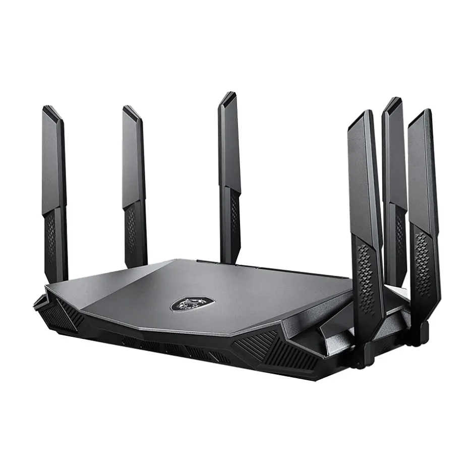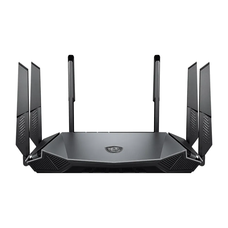 The MSI RadiX AX6600 gaming router gives you lower latency and stable connections, whether wired or wireless, with a wide range of supported devices, such as desktop PCs, mobile devices, gaming consoles, and all your IoT devices at home, connecting up to 60 concurrent devices. The RadiX AX6600 delivers lightning-fast transfer speeds up to 6600Mbps with OFDMA, MU-MIMO, and 1024QAM technologies. One 2.4GHz band and dual 5GHz bands benefit all your devices with superb connectivity. A built-in AI engine can automatically prioritize network traffic, making it easier to stay on top whether it’s gaming online, binge-watching streaming media, or getting work done. Reduce interruptions while you enjoy live streaming media. Robust hardware for intense gaming performance. Dedicated radio chip for each band. Heat pipes and graphene-coated heat sinks. Advanced cooling that improves reliability.