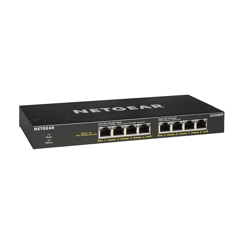 The Netgear 300 Series Gigabit Ethernet unmanaged switch with PoE provides easy, reliable, and affordable network connectivity for home and small offices. With this unmanaged plug-and-play switch, you can expand your network connections to multiple devices instantly. The SOHO gigabit PoE unmanaged switch supports Netgear’s FlexPoE exclusive upgradeable PoE feature. Powered by the flexible integrated PoE+ technology, you can increase or decrease the PoE budget by simply purchasing a new Netgear FlexPoE power supply, effectively future-proofing small business networks and budgets. This unmanaged switch contains eight PoE+ ports with 83W total power budget, and includes Netgear FlexPoE, making it expandable to 123W (with separately purchased power supply module).