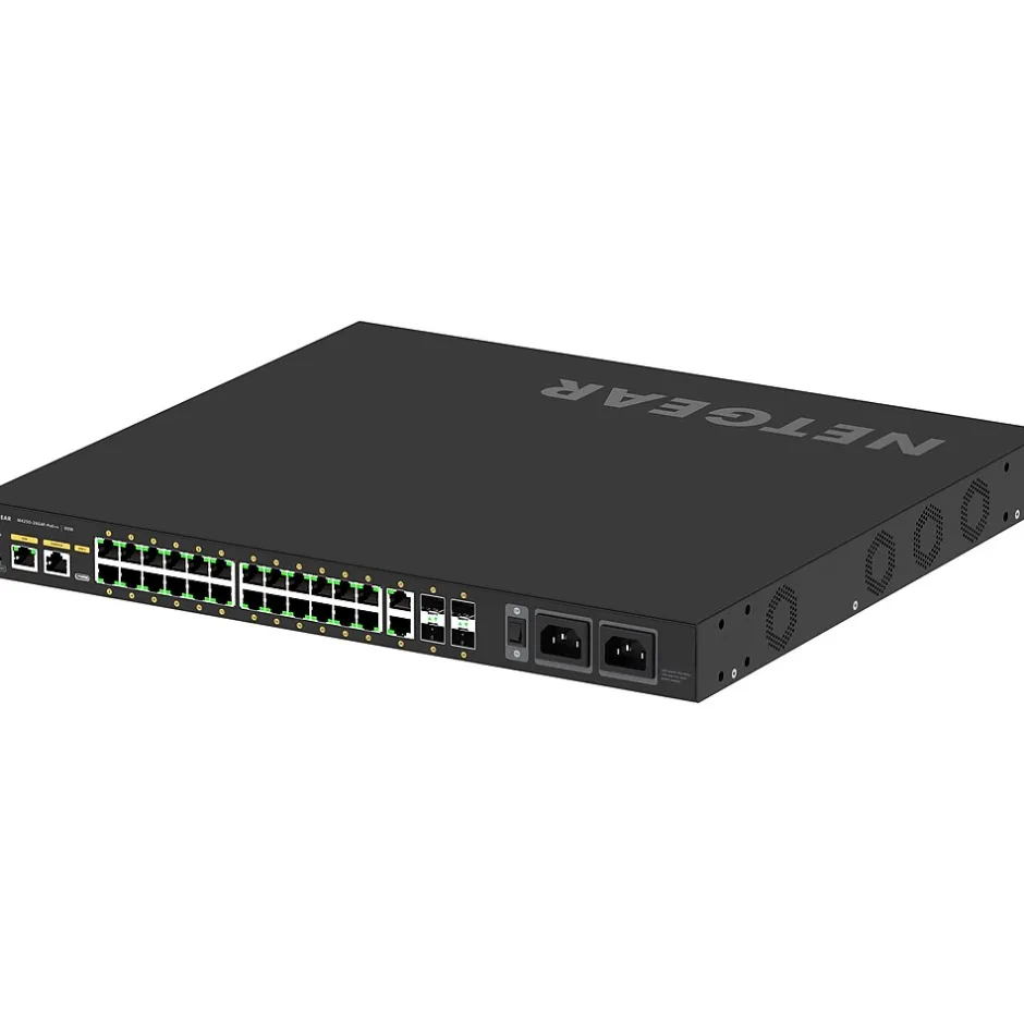 This AV Line of M4250 switches with out-of-the-box functionality and an industry-first: a concurrent second user interface solely designed with the AV Pro in mind.NETGEAR has enhanced the experience for AV professionals by including an upgraded user interface designed from the ground up. Pro AV customers don’t have to settle for an IT-centric interface with settings and IT-specific functionality they will never need. The upgraded M4250 AV interface presents the common AV controls right up front with user-selectable profiles for common AV platforms making it a snap to ensure the settings are correct for a specific audio or video application. When each M4250 is simply configured with AV profiles on certain ports, the AV Line offers automatic and dynamic configuration of multiple M4250 switches connected together. This automatic configuration, known as Auto-LAG and Auto-Trunk, combined with as NETGEAR IGMP Plus, make setting up a complicated AV over IP network easier and quicker than ever before.