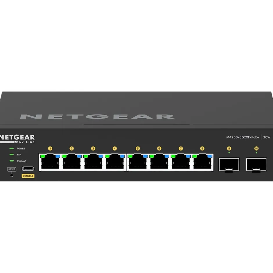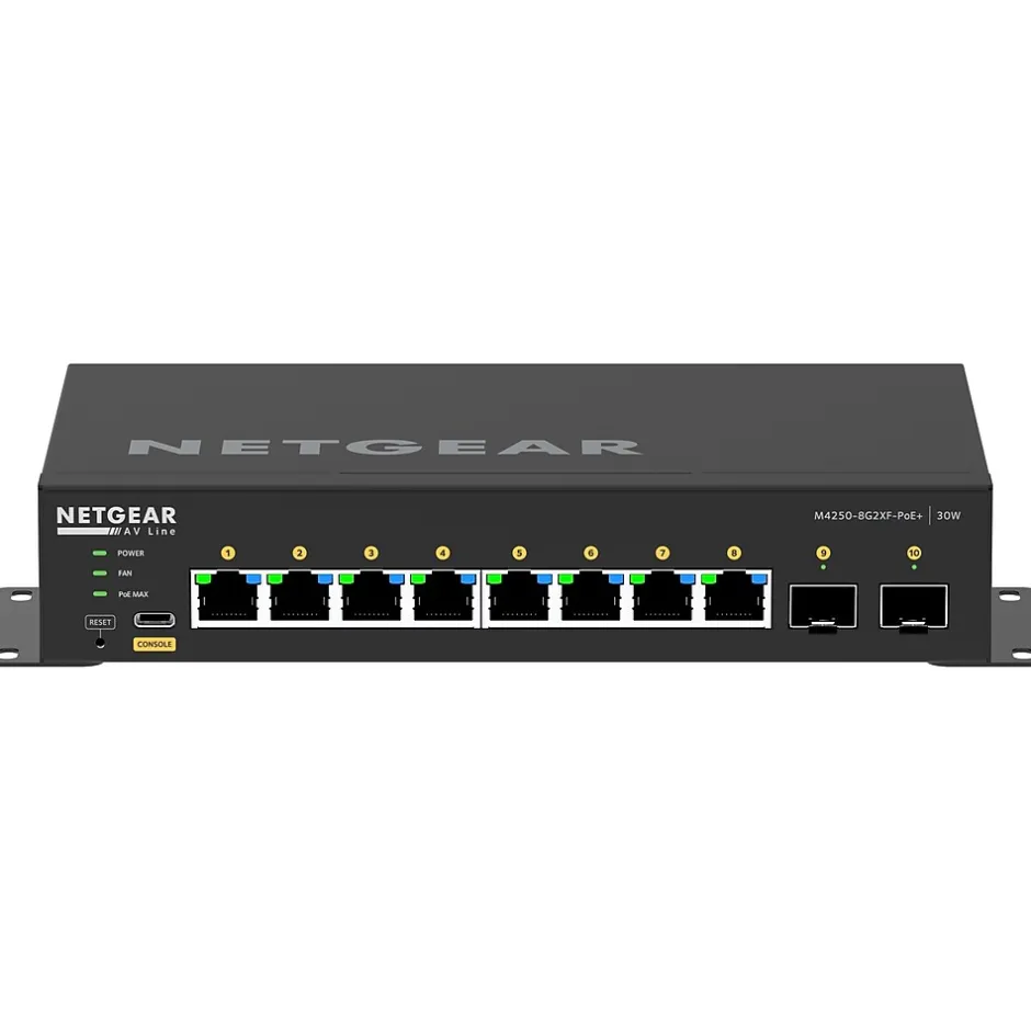 This AV Line of M4250 switches with out-of-the-box functionality and an industry-first: a concurrent second user interface solely designed with the AV Pro in mind.NETGEAR has enhanced the experience for AV professionals by including an upgraded user interface designed from the ground up. Pro AV customers don’t have to settle for an IT-centric interface with settings and IT-specific functionality they will never need. The upgraded M4250 AV interface presents the common AV controls right up front with user-selectable profiles for common AV platforms making it a snap to ensure the settings are correct for a specific audio or video application. When each M4250 is simply configured with AV profiles on certain ports, the AV Line offers automatic and dynamic configuration of multiple M4250 switches connected together. This automatic configuration, known as Auto-LAG and Auto-Trunk, combined with as NETGEAR IGMP Plus, make setting up a complicated AV over IP network easier and quicker than ever before.