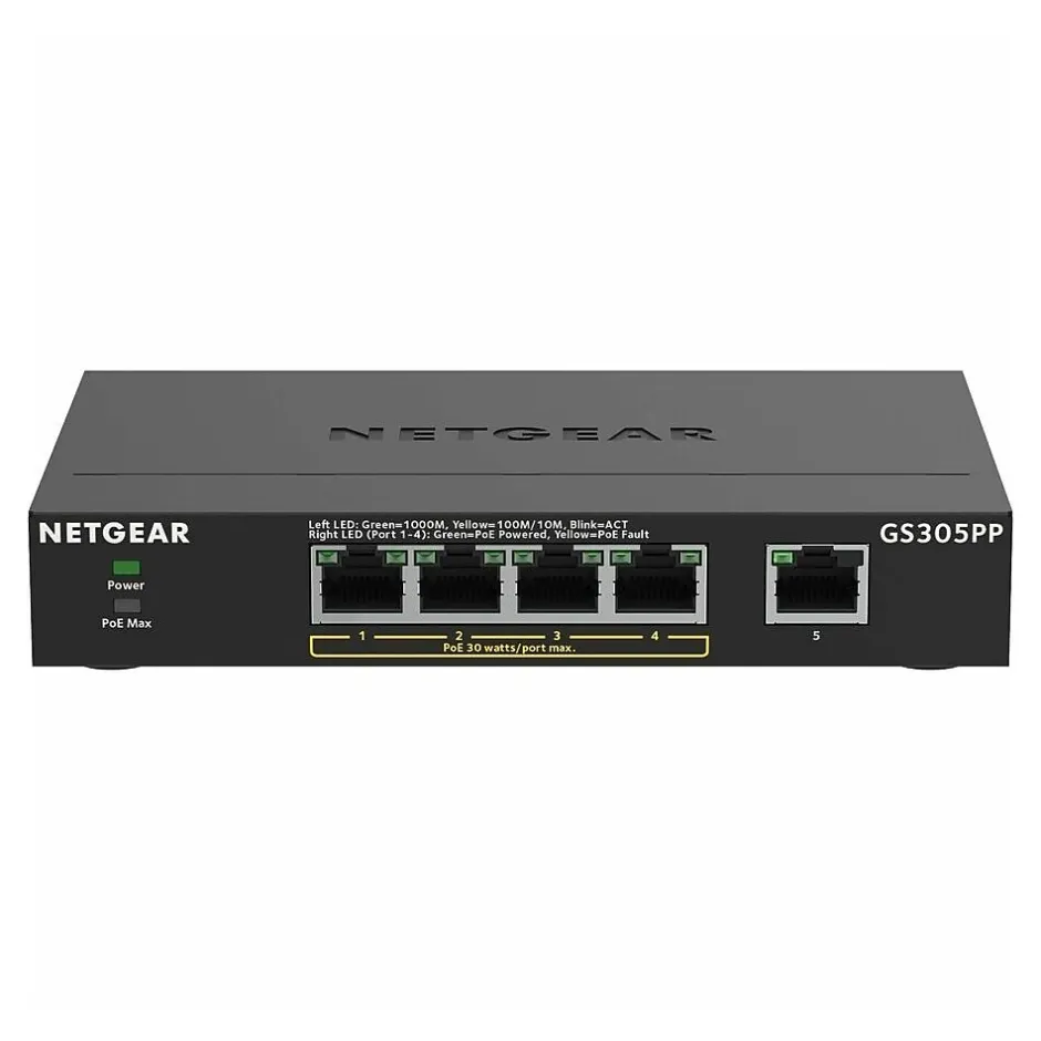 NETGEAR 300 Series Gigabit Ethernet Unmanaged switches with PoE provide easy, reliable, and affordable network connectivity for home and small offices. With these unmanaged plug-and-play switches, you can expand your network connections to multiple devices instantly. The unmanaged switches provides power and data from a single Ethernet (CAT-5e) cable to devices such as IP cameras, VoIP/ Internet-based phones, wireless access points, etc. The majority of these models also support PoE power auto-balance and allocation feature.