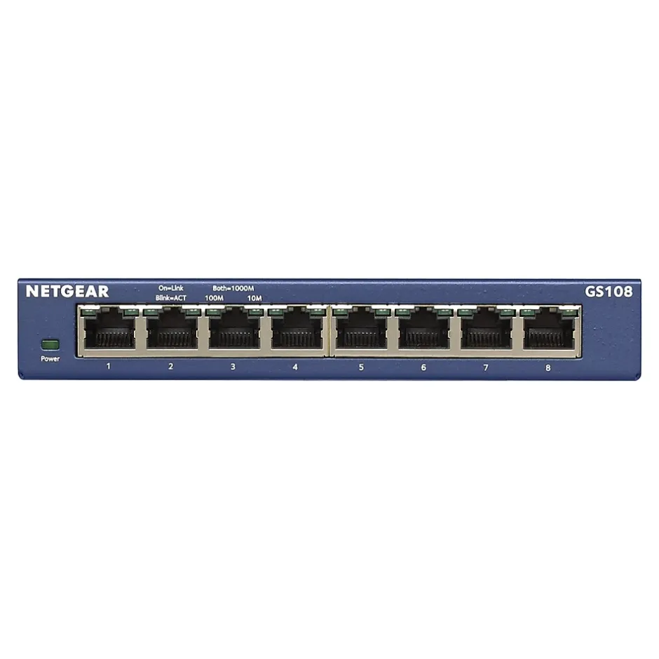 - The standards-based ProSAFE Gigabit switches senses and adjusts for network speed and cabling type automatically. Easily integrates into your existing Ethernet network – no matter if it is running at 10/100Mbps or Gigabit speed. Simple set up with no software or configuration needed. Front panel LEDs keep you informed of power status, link speed and link activities.