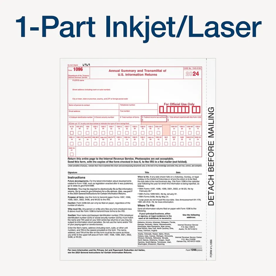 - Single-part forms; meets IRS specifications