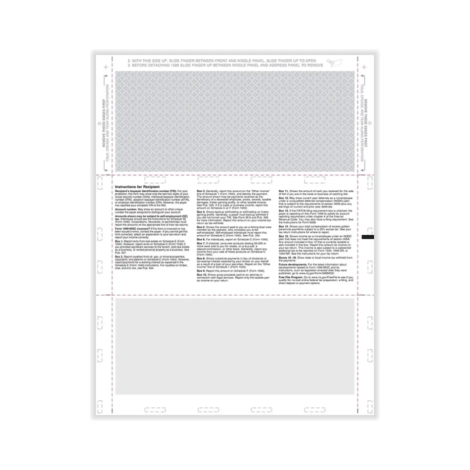 - Z-fold blank tax form with pressure seal