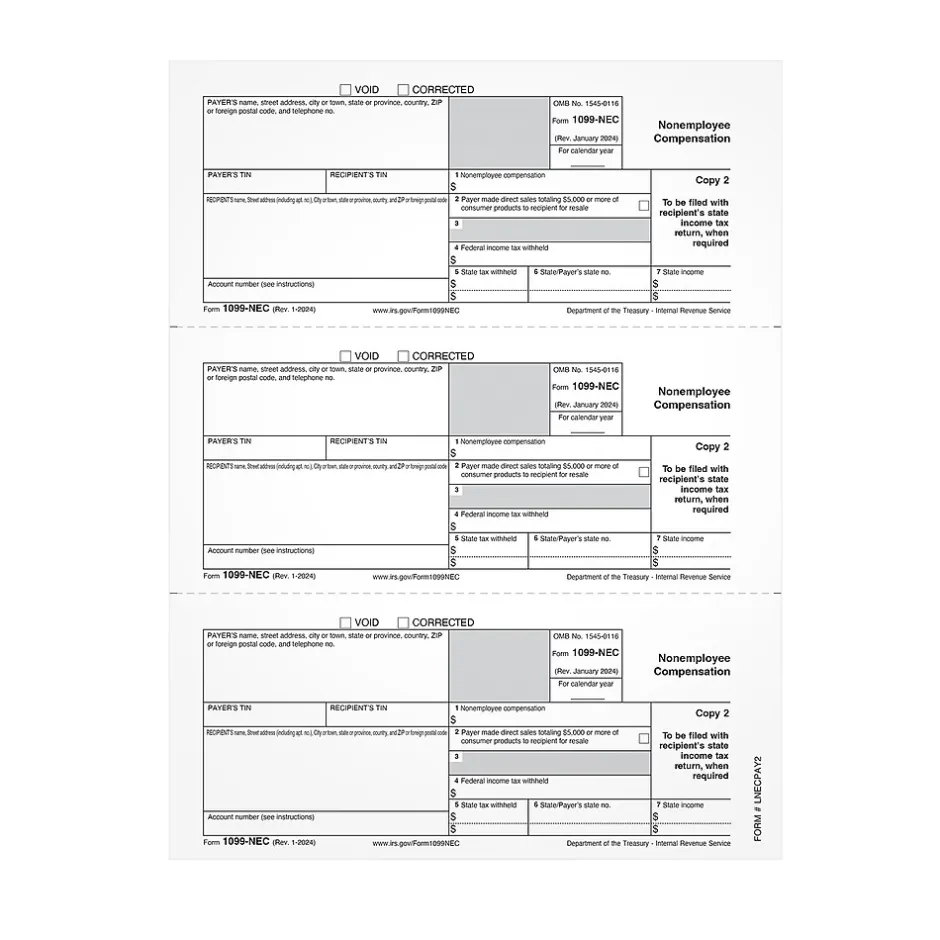 - Pack contains 50 1099-NEC Copy 1/2 sheets that yield 150 forms for State/Local filing