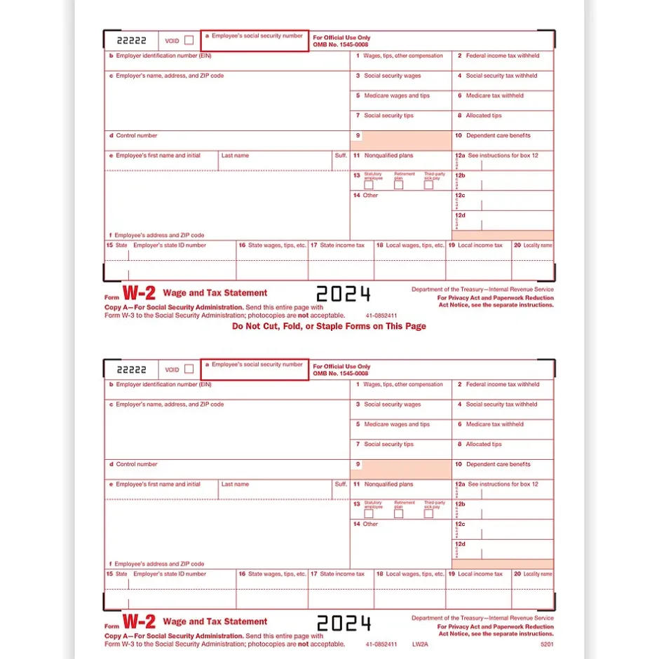 - Single-part, 2-up: IRS Federal Copy A