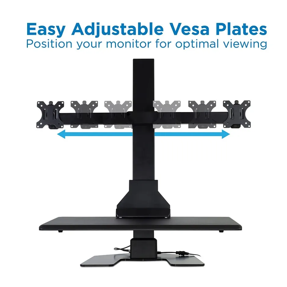 - ALL IN ONE: A dual monitor mount and adjustable standing desk converter all in one. Double your screen space, double your productivity! VESA Compatible mount fits patterns 75x75mm and 100x100mm, and monitors up to 32 inches.
