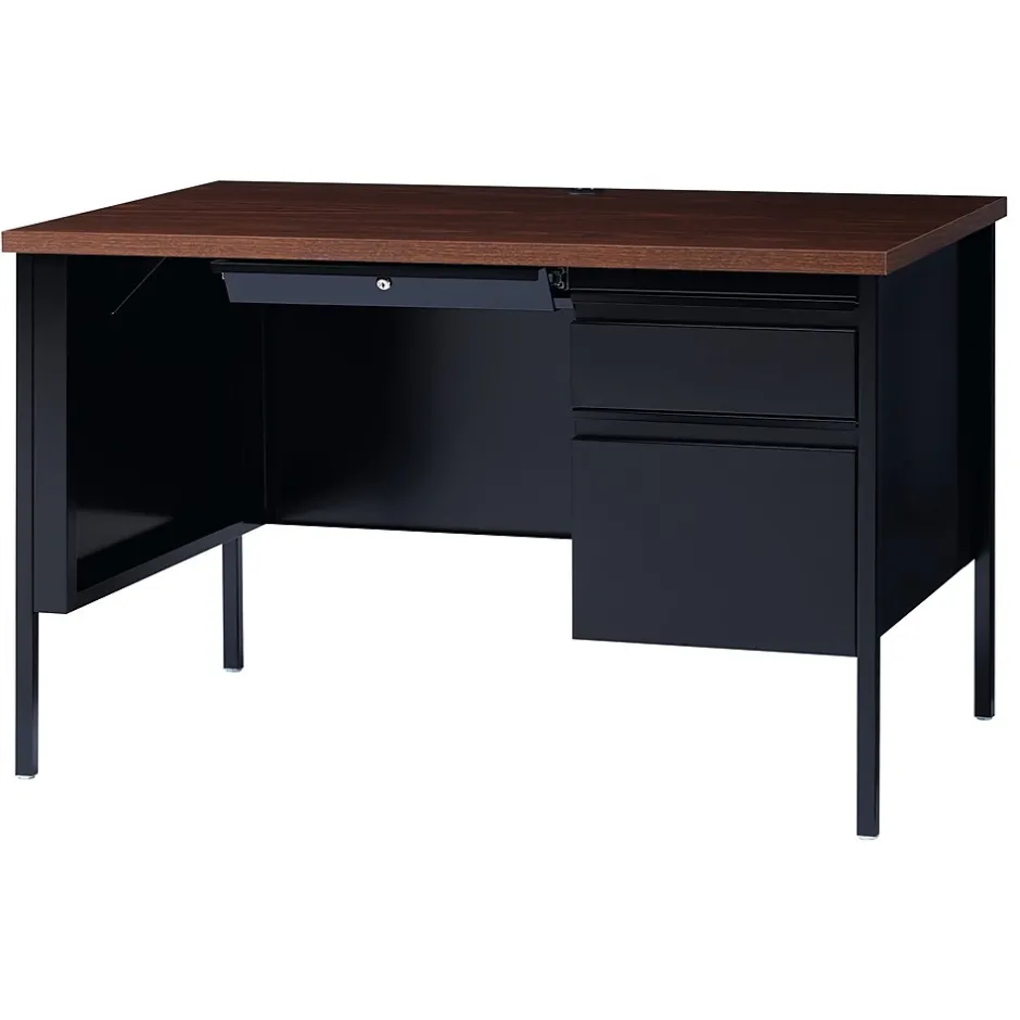 Commercial grade metal desks are perfect for business, educational or personal offices. These desks are constructed with high quality durable materials that are suitable for heavy use. Standard features include: full extension ball-bearing slides for smooth drawer action, central locking center drawer, and a durable laminate work surface. Desk ships fully assembled except for the legs. Hardware to attach legs is included. All desks are designed to meet or exceed ANSI-BIFMA industry standards for performance and workmanship and are backed by a Limited Lifetime Warranty.