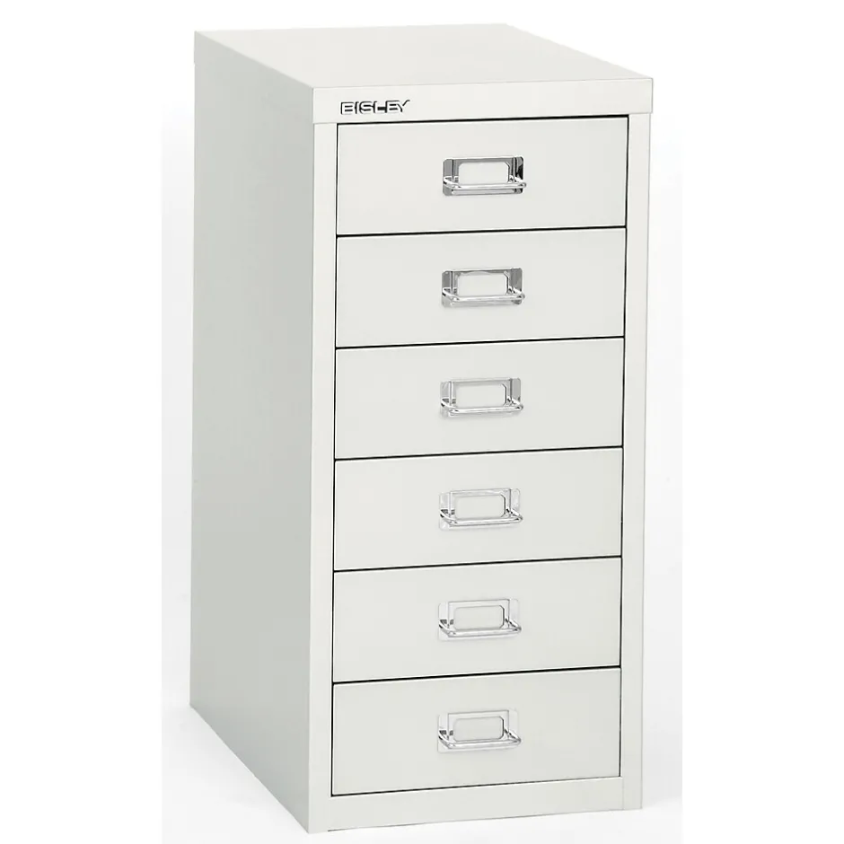 Bisley® Six drawer under desk cabinet in white color has built-in label holders which help to identify drawer contents with ease. Cabinet is constructed with steel and has a powder coated paint finish to provide maximum durability and style.