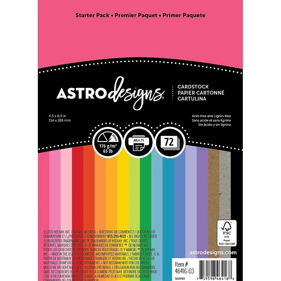 Create fun and festive crafting projects with this Astrodesigns 18-Color Starter Pack! This colored cardstock is perfect for any craft project, wedding invitation suite, greeting card, origami and more! This pack contains 72 sheets to ensure you have enough on hand for all your creative needs. Plus, it’s acid-free and lignin-free so your creations won’t yellow or disintegrate over time. Perfect for scrapbooking enthusiasts and crafters alike, the 4.5″ x 6.5″ cardstock is compatible with electronic cutting machines so you can also design intricate letters and shapes, greeting cards, posters, and more! Just create, score, cut or print!