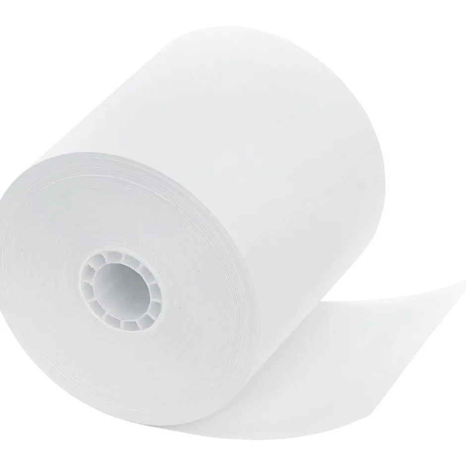 - Premium quality, single-ply white bond paper rolls are manufactured to OEM specifications