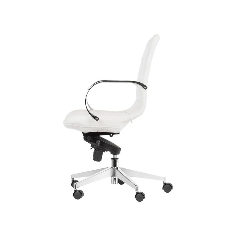 This Gry Mattr ergonomic office task chair with bungee lumbar support will make your work easier. The five-star base with casters adds mobility. White faux leather upholstery and steel armrests will complement any interior.