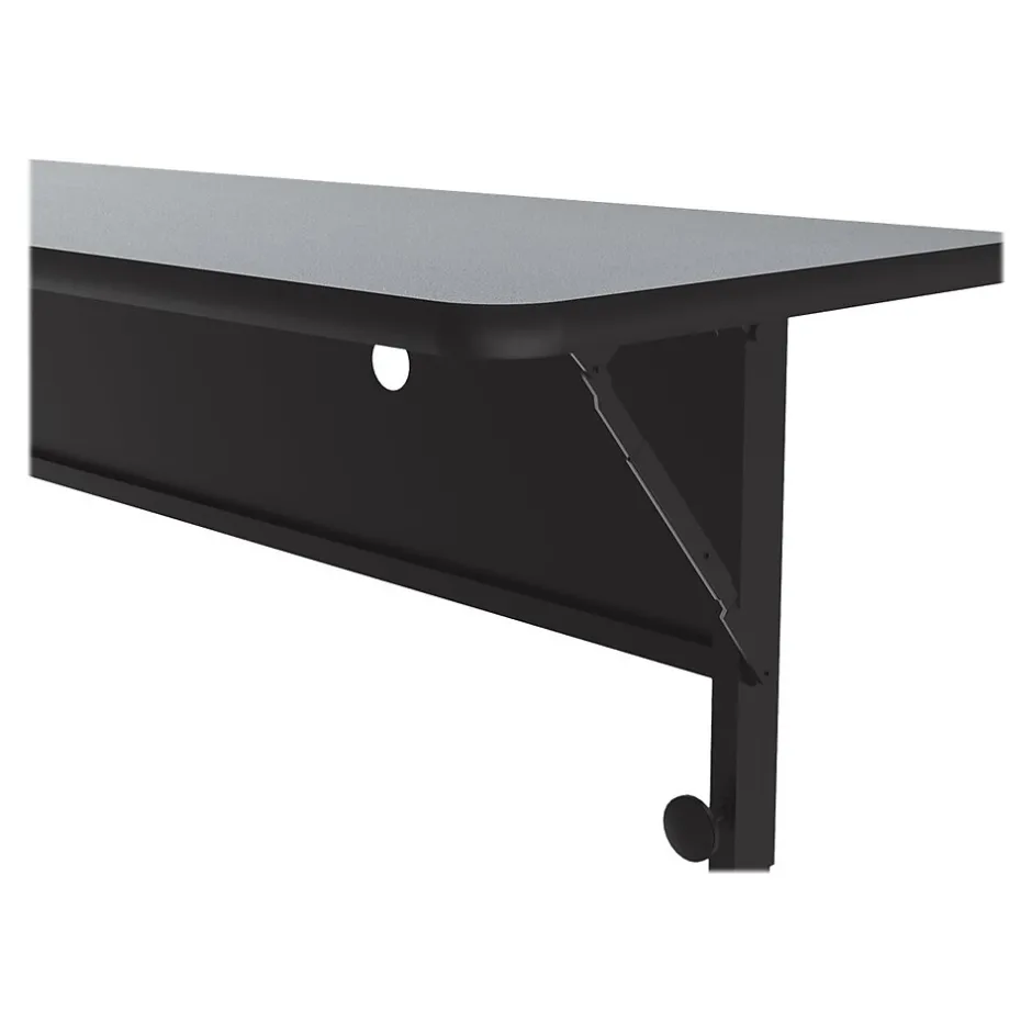 This mobile nesting option allows for easy fold-up and compact storage. The design allows for easy setup, configuration, take-down, and storage. Ideal for heavy-duty use in schools, universities, offices, hotels, training rooms, and conference areas. The thermal fused laminate top is water-, stain-, and dent-resistant.