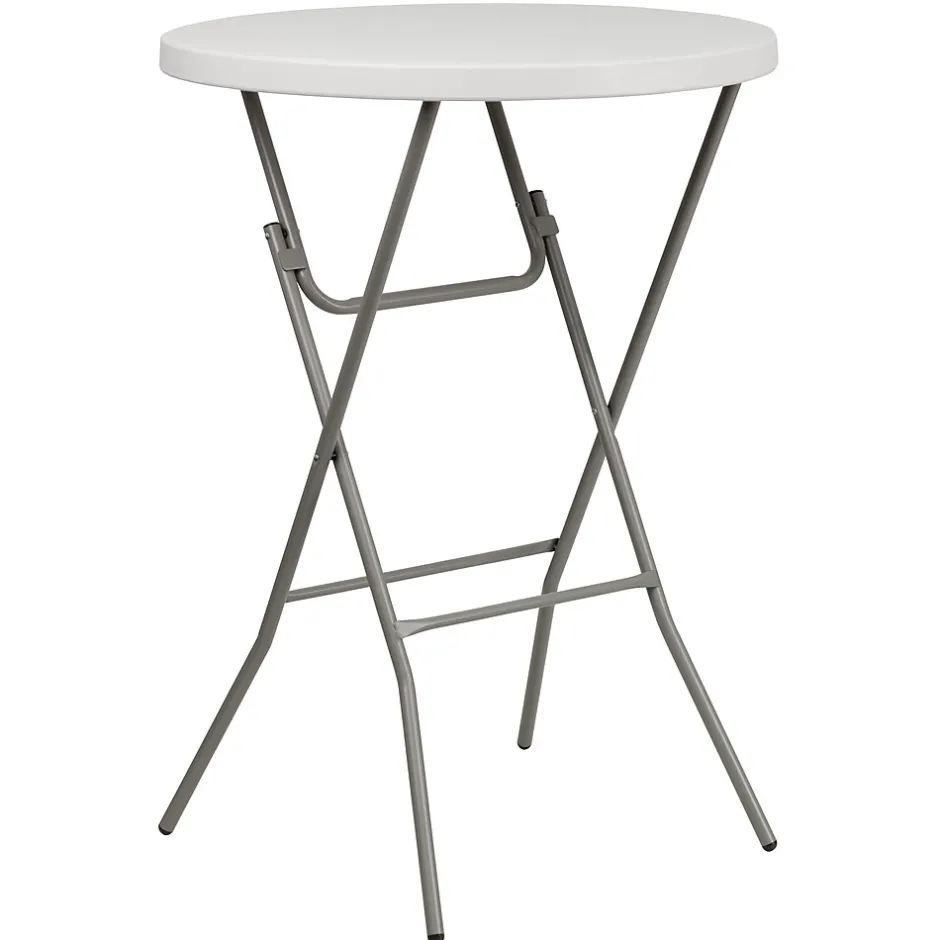 Host mixers at your venue for Wednesday Wind Down, make it a social setting incorporating these bar height cocktail tables. These pub tables encourage everyone to stand around and mingle as your mixologist serves up delicious signature drinks to keep people coming back to your lounge. When you invite friends over to your backyard bash this cocktail table is perfect for socializing or grabbing snacks poolside. This table can comfortably seat up to 3 adults to enjoy friendly conversation. Let the birthday girl shine at her own table while everyone sits at table height tables. The legs fold flat to transport and store away. These event tables are a must have for your event rental business or banquet hall to add variety to your seating. Although designed for indoor events this party table can be used outdoors on the deck or patio during good weather but must be stored indoors.