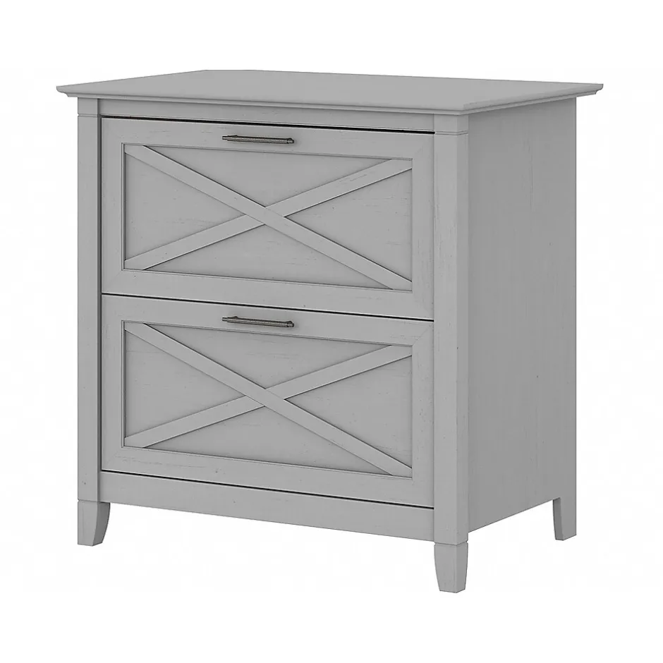 A natural fit for homes that embrace coastal and farmhouse decor, the Bush Furniture Key West two-drawer lateral file cabinet is perfect for organizing paperwork in virtually any room. Two file drawers open on smooth, full-extension ball bearing slides for an easy reach to legal- and letter-size documents. A unique X-pattern accent on the drawer panels creates a relaxed style supported by a sturdy and attractive post-leg design. This lateral file cabinet matches the height of any Bush Furniture Key West desk (sold separately) to create an extended work surface when placed side by side. The Bush Furniture Key West collection offers a wide variety of farmhouse furniture that makes building a complete home office or living room a breeze. This two-drawer file cabinet is tested to meet ANSI/SOHO quality standards for safety and performance and is backed by the Bush Furniture 1-year manufacturer limited warranty.