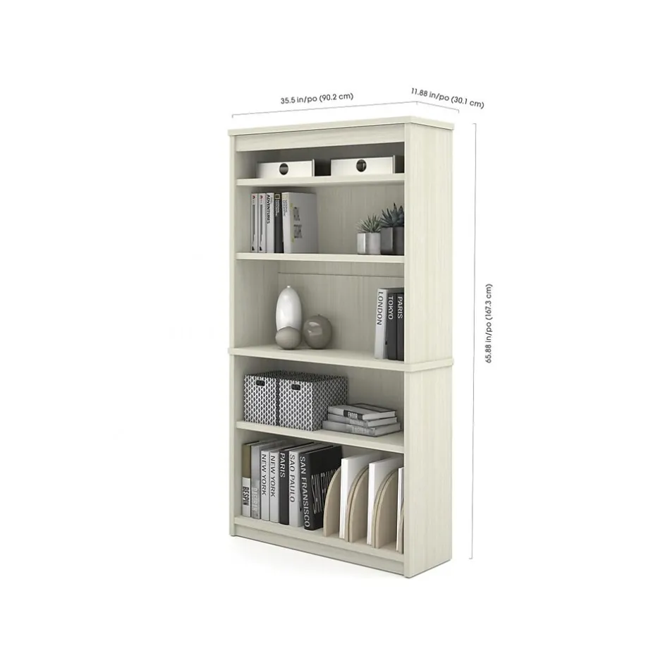 - Assembled dimensions: 66.5″H x 66″W x 95.5″D computer desk with hutch, 29.63″H x 28.38″W x 19.63″D lateral file cabinet, 65.88″H x 35.5″W x 11.88″D bookcase