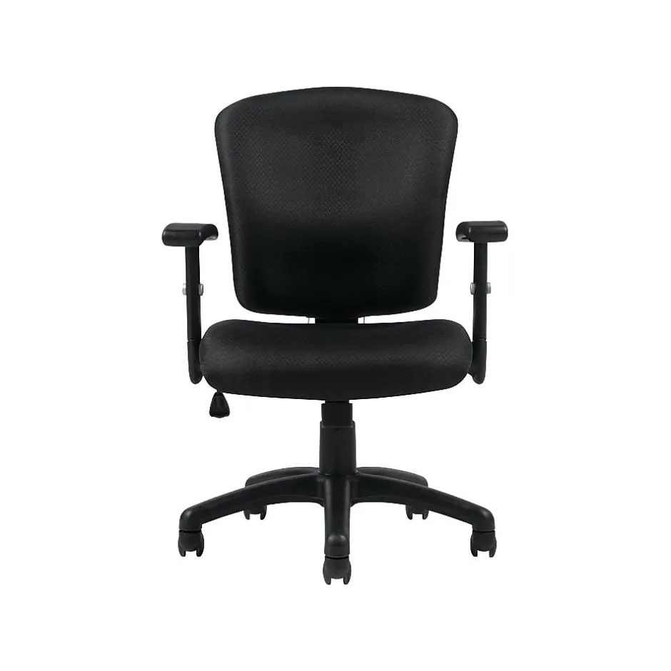 Multi-function task chair with pneumatic seat height adjustment.